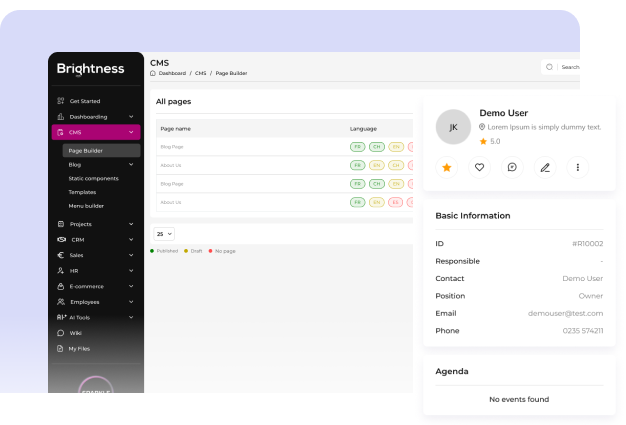 Het complete platform voor teams die willen opschalen: website, webshop, CRM, sales, projecten en AI Agents in één. Werk met rollen en rechten. Van lead tot oplevering: gestroomlijnde processen, minder fouten en maximale transparantie.